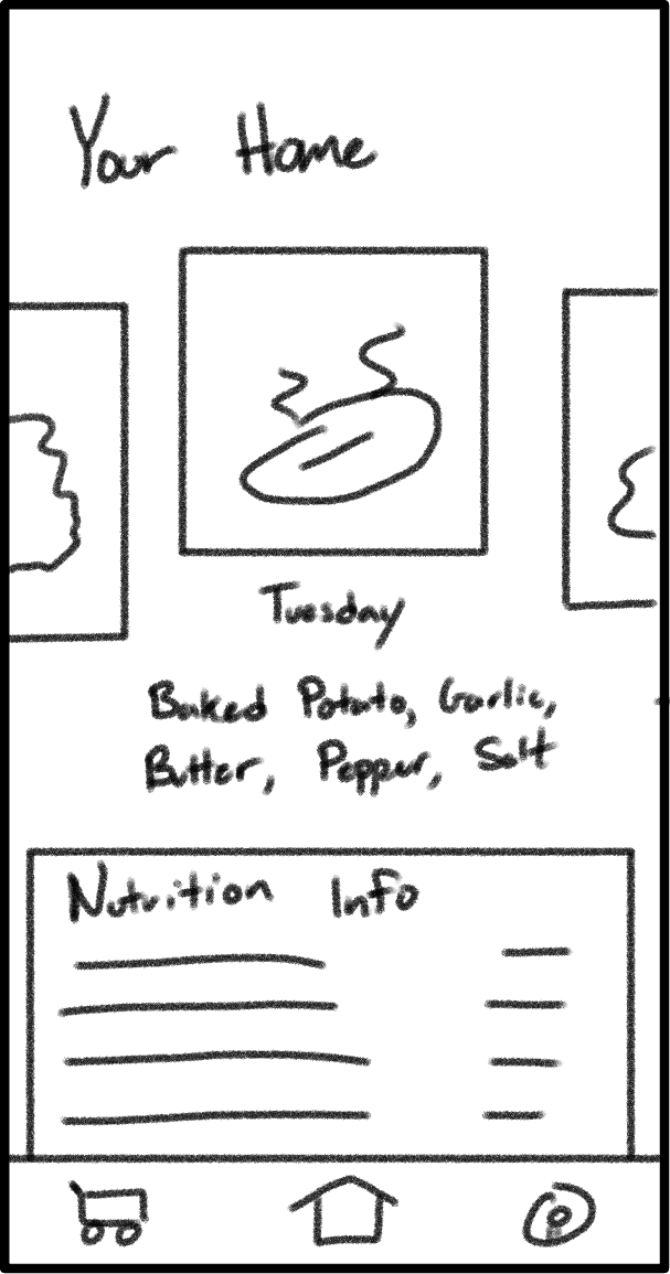 Our second iteration builds off the manual flow by attempting to simplify the whole process. We realized particularly busy users might not have the mental energy to go about regularly crafting a meal plan, and thus tried to find a way to remove that requirement from the experience.